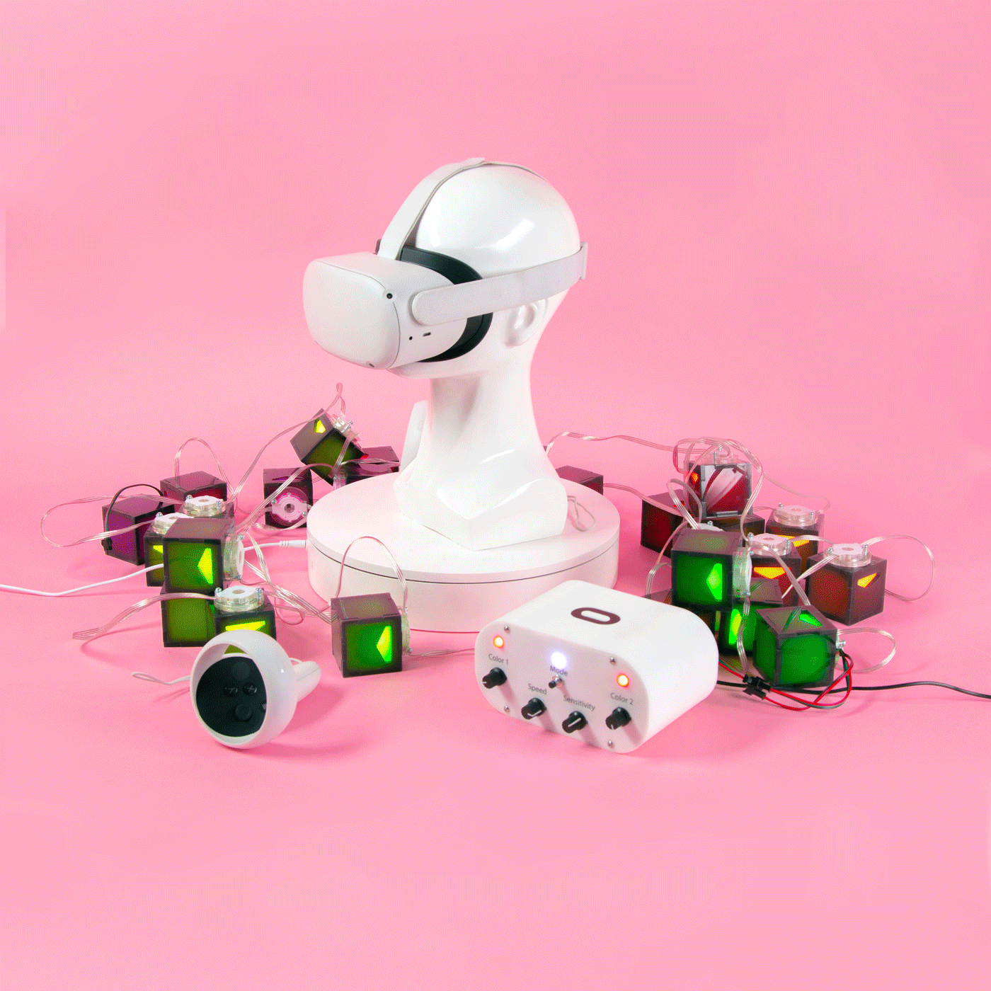 On December 14, 2021, Quest Day took over questday.fb.com and social media via @oculus with a day-long celebration of over-the-top inventions for every kind of Quest 2 fan—pet lovers, bakers, athletes, music geeks, horror heads, and more. Inspired by real conversations in Quest community subreddits, each invention was designed to integrate physically with the Quest 2 headset, blurring the line between the digital and tactile. Though none were destined for shelves, our fictional Meta engineer, Dr. 6DOF, and his excitable sidekick, Questy, demoed each working prototype in a series of comedic videos paired with themed giveaways. The grand finale? A surprise drop of 500 free Quest 2 headsets.
