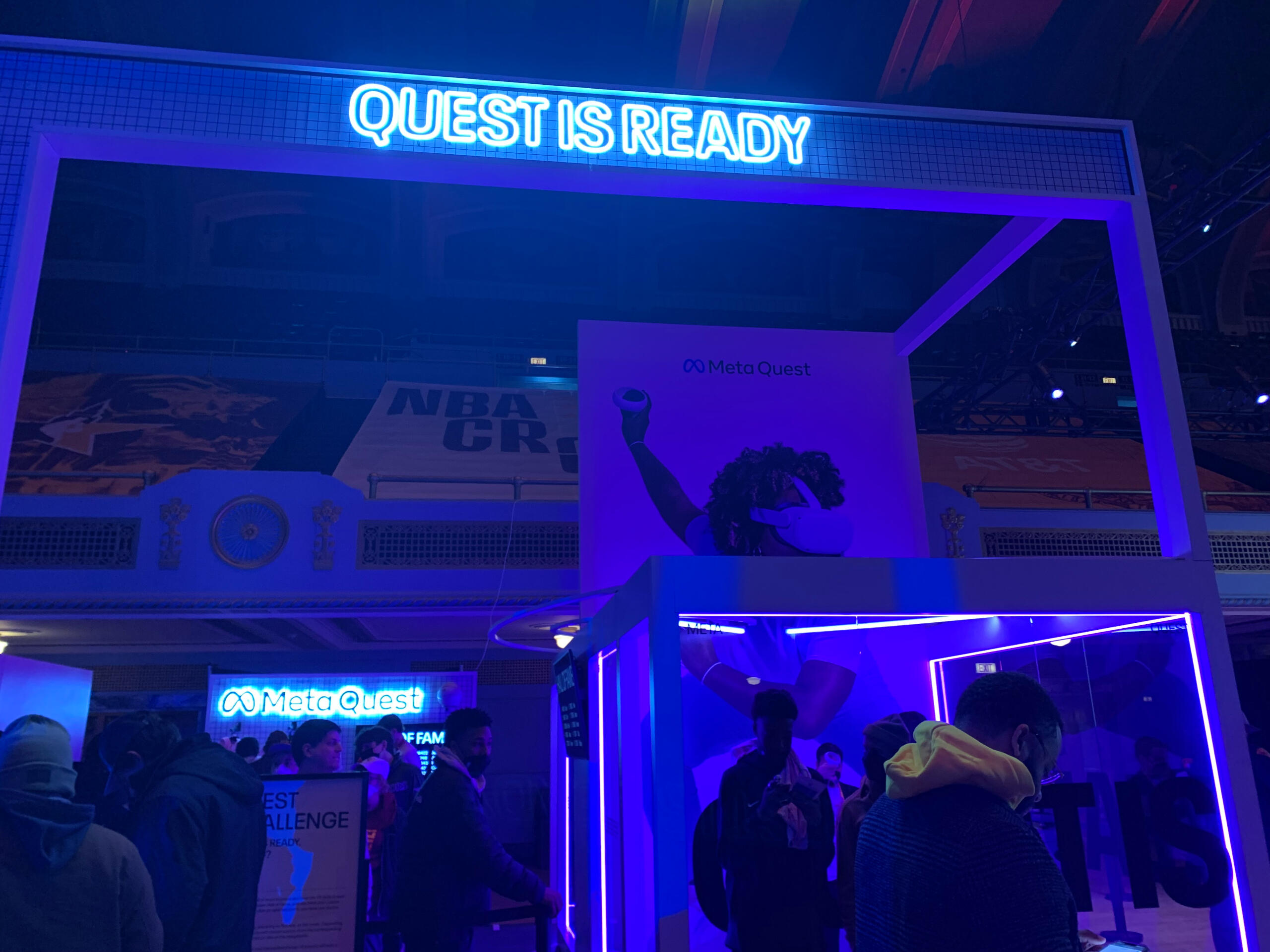 To prove that VR is for everyone, Meta Quest partnered with Deeplocal to create a one-of-a-kind experience at NBA Crossover. Fans flocked to the Meta booth to play Beat Saber and compete for a chance to win a free Quest 2 headset. The activation also featured custom inkjet-printed merch, creating a nonstop stream of gameplay, giveaways, and personalized takeaways. With its inviting atmosphere and universally appealing game mechanics, the booth drew both VR enthusiasts and NBA fans—introducing Meta Quest to a fresh, engaged audience.