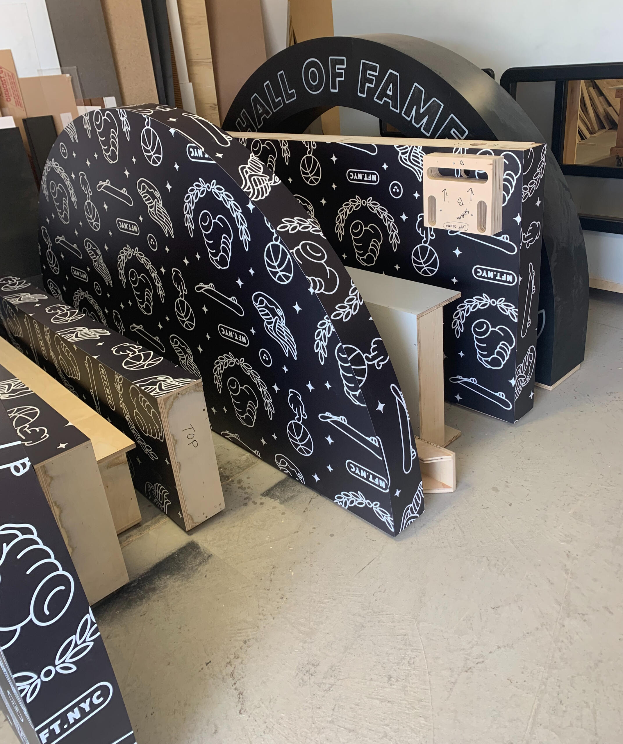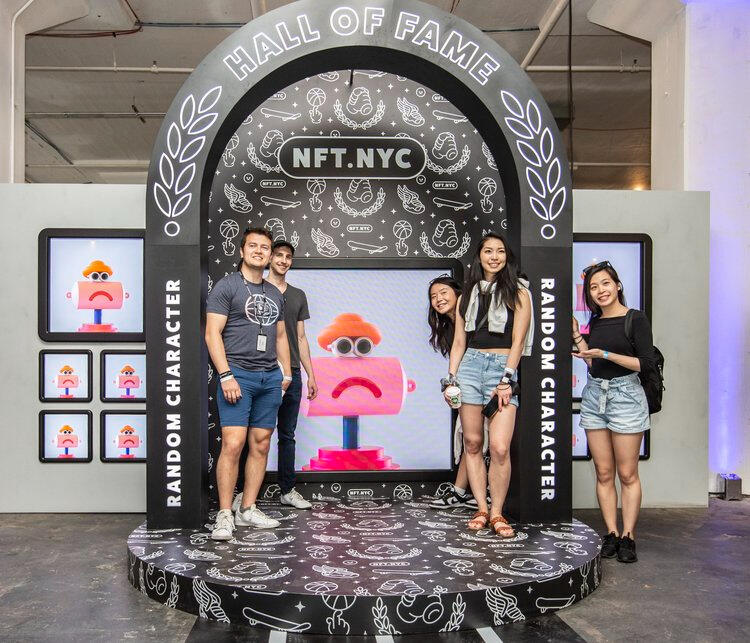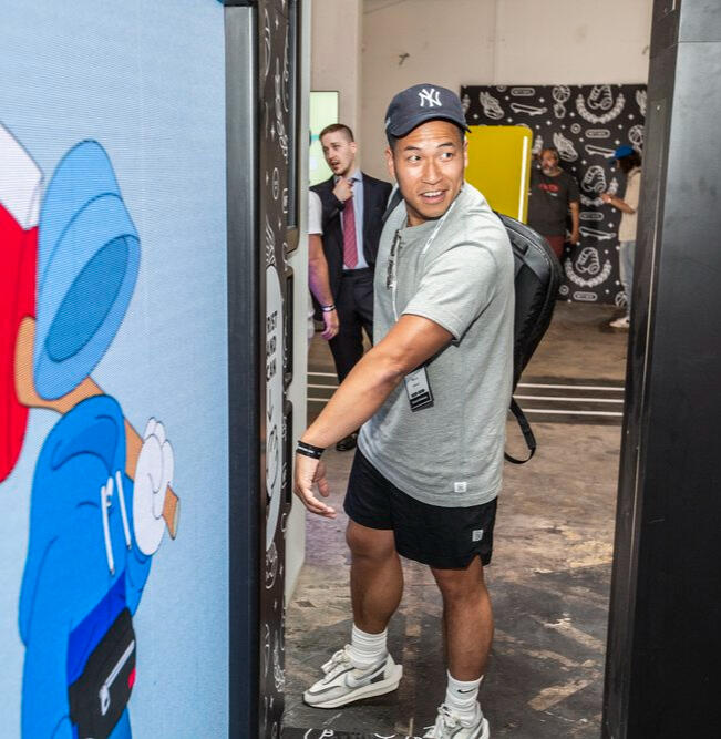 In collaboration with Random Character Collective, Shopify, and Top Drawer Merch, we transformed a downtown warehouse into the Invisible Friends Athletic Club for NFT.NYC 2022—a vibrant playground for NFT enthusiasts. Guests were greeted by track-style vinyl art that guided them to the Hall of Fame, an immersive and ever-evolving gallery showcasing the iconic Invisible Friends, SlimHoods, and MoodRollers characters. Using wristband scans, RCC holders could instantly project their unique character onto every screen in the space, creating unforgettable, share-worthy photo moments. The experience was capped off with an exclusive, skate-themed merch shop powered by Shopify, featuring a cutting-edge token-gated vending machine that gave attendees access to limited-edition gear.