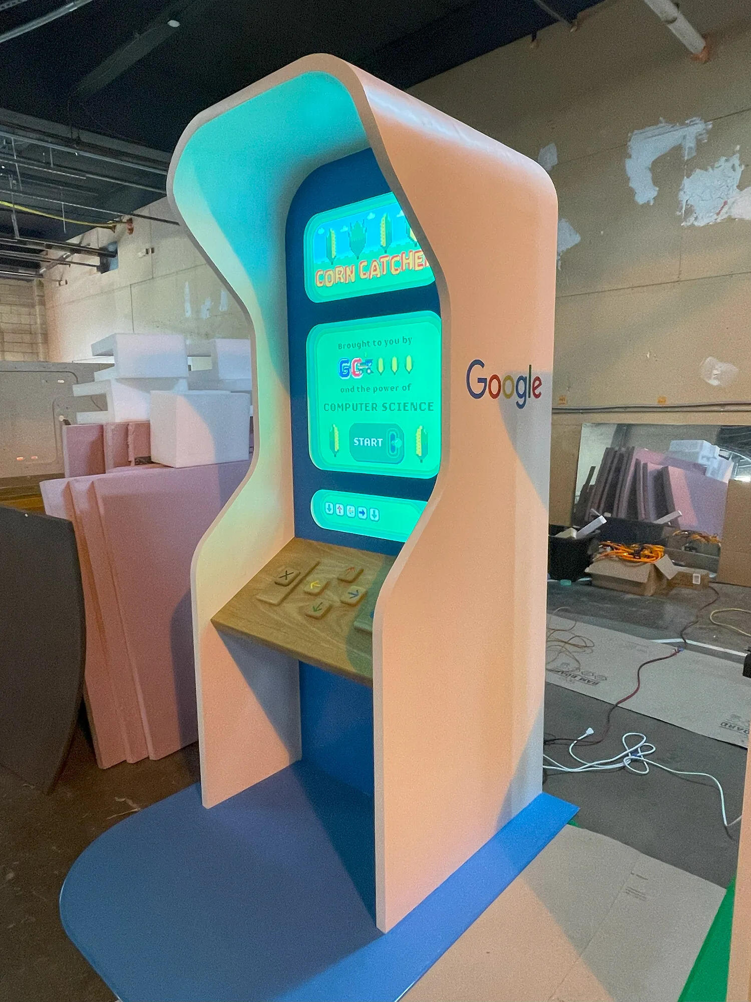As Associate Producer for this project, I led the full scope of onsite coordination and preparation, ensuring seamless execution during the 11-day event. I managed all travel logistics for the production team, coordinated venue requirements including waste management, and oversaw the procurement, packaging, and shipment of 10,000 “Google Approved” prizes for player engagement. Additionally, I collaborated closely with internal creative technologists to develop, refine, and playtest interactive arcade games such as Corn Catcher and Cookie Scoop, ensuring each experience was educational, engaging, and aligned with Google’s mission to inspire kids in coding and computer science.Outcome